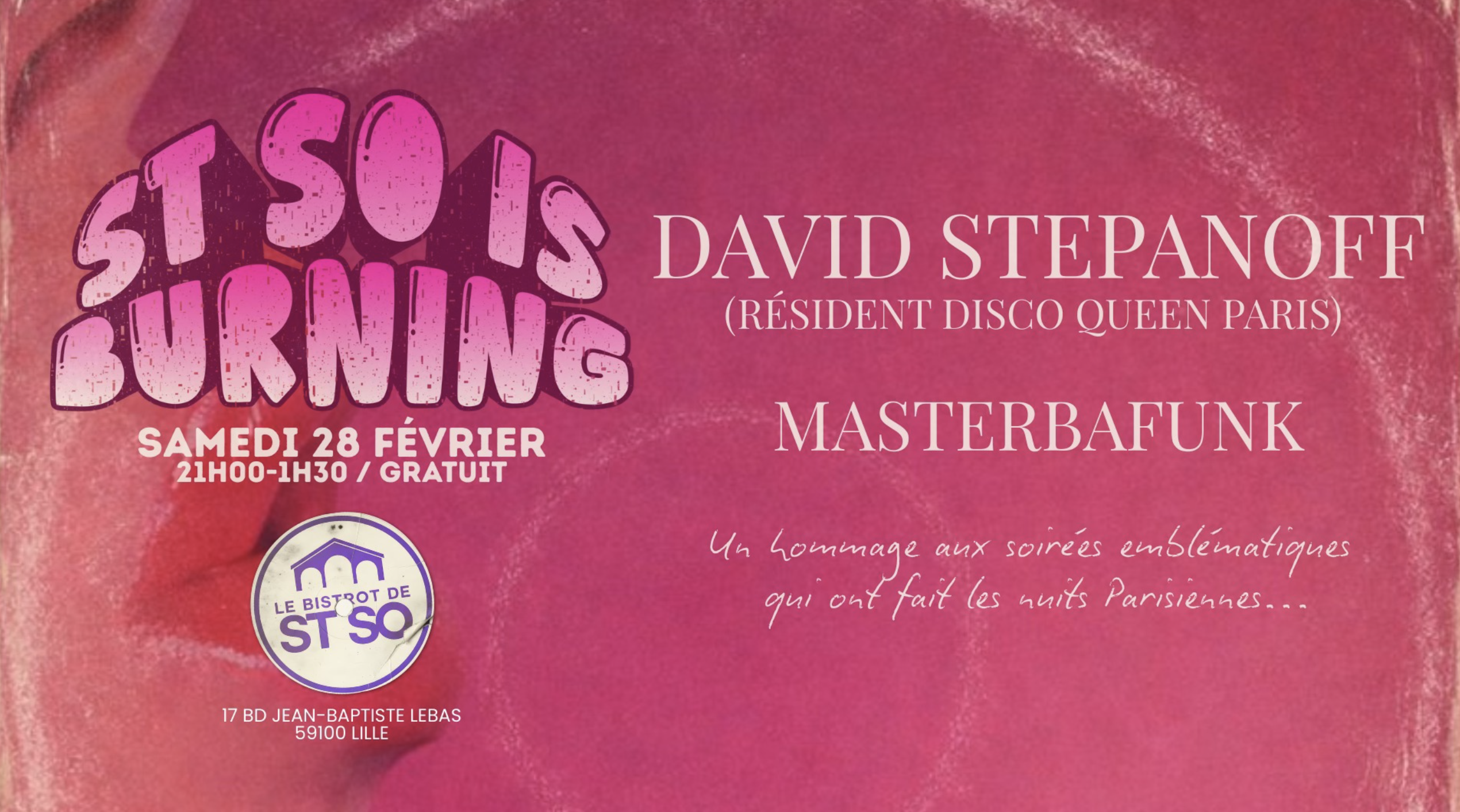 Le Bistrot de St So se remplit très vite pour ce genre d'affiche. Arrivez dès 20h30 pour profiter du snack et sécuriser votre place près du DJ booth avant que la foule n'envahisse le dancefloor !