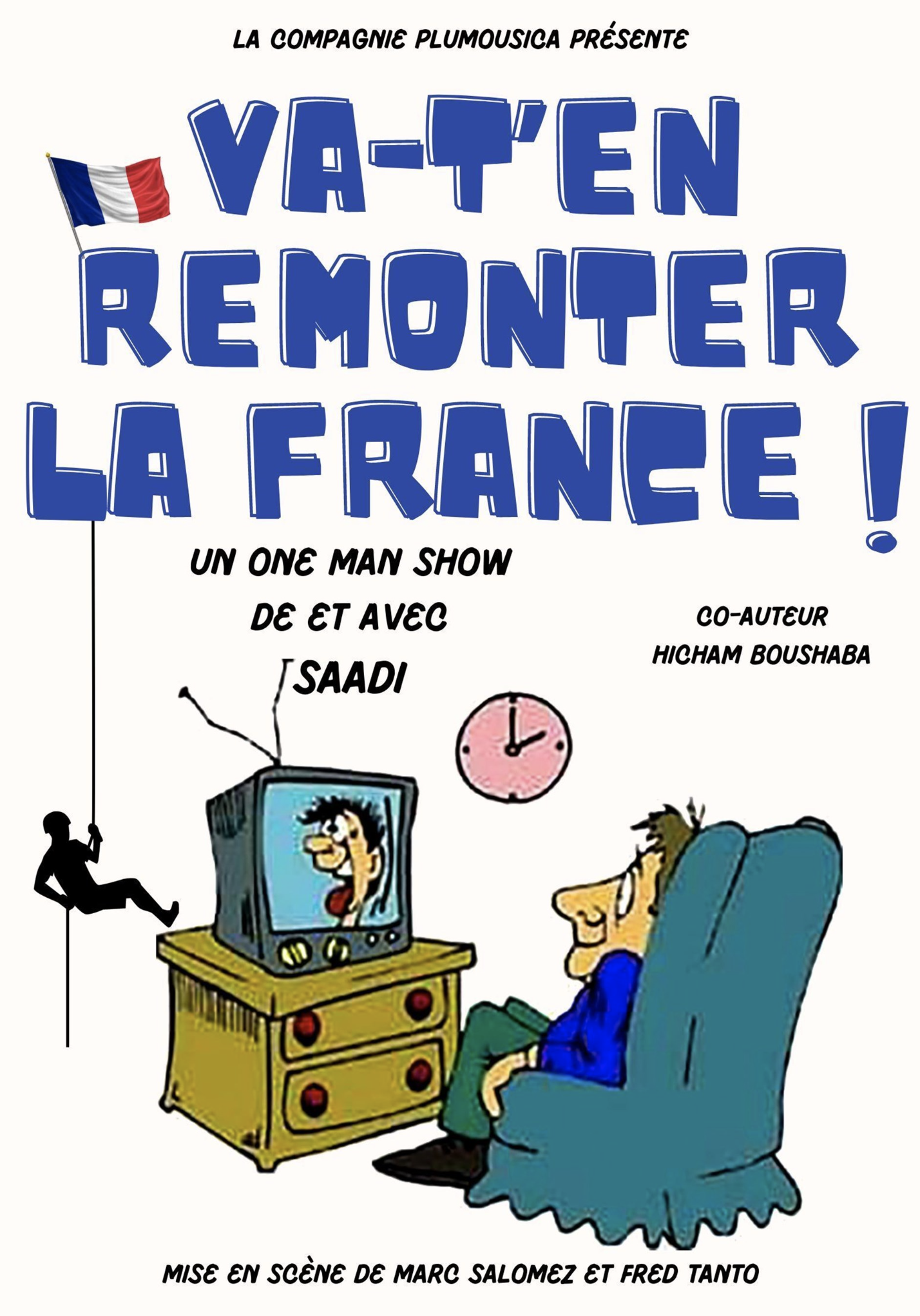 La Compagnie Plumousica présente Saadi dans son nouveau spectacle intitulé Va-t'en Remonter la France !. Entre actualités rassurantes et paradoxes de notre époque, l'humoriste propose une galerie de personnages hauts en couleurs pour nous faire rire des clichés qui collent à la peau de l'Hexagone.